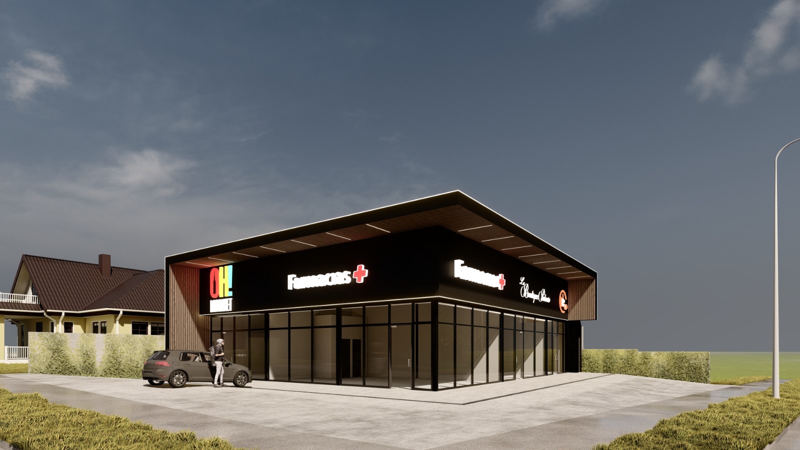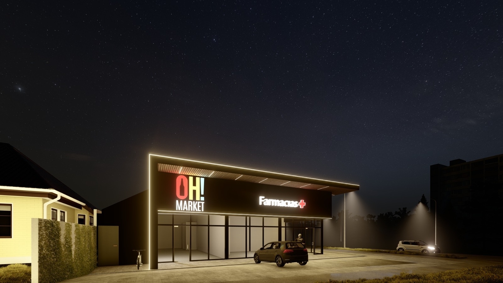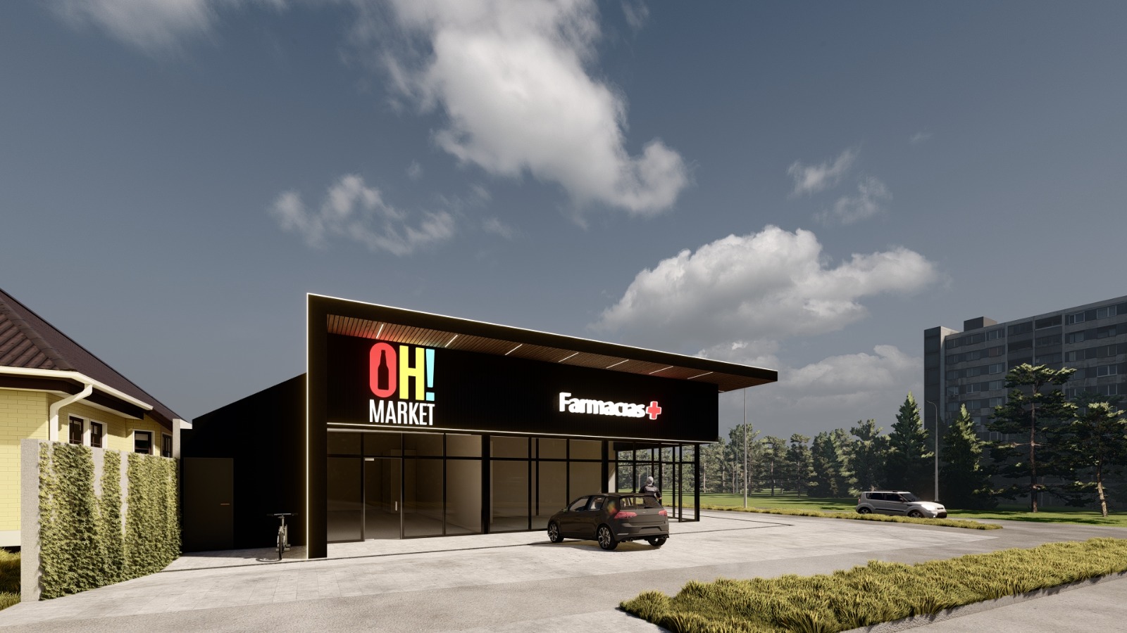 Remodelación y habilitación de locales comerciales en un espacio de 335 m2. La remodelación contempla el mejoramiento mediante estructura metálica como base, y revestimientos de Siding metal, como acabados arquitectónicos, combinados de una fachada vidriada. los cuales darán espacio a 4 locales comerciales de alto estándar en una zona de alta plusvalía.